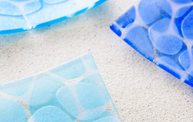 鮮やかな色彩が魅力の琉球ガラスのタイルはお部屋のインテリアにも最適です。