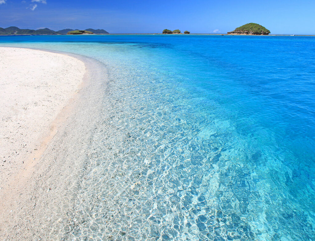 白い砂浜に続く、サンゴ礁の海のグラデーションを表現しました。