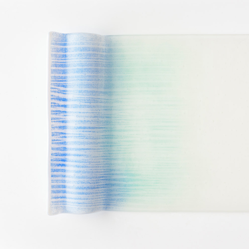 波打ち際の白から海のグラデーション、波をイメージした縦のライン。