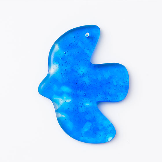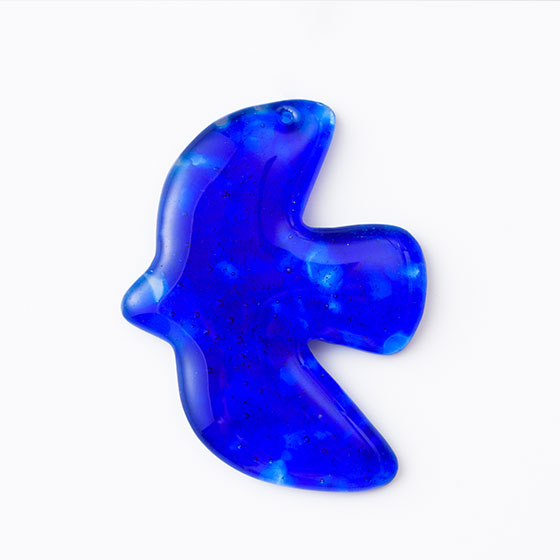 沖縄の海を感じさせる美しい青色のガラスを使い、「幸せを運ぶ青い鳥」をイメージしましたが、寿社長からご提案のあった「琉球青鳩」はコンセプトにぴったりのモチーフでした。