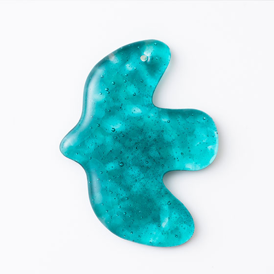 フュージング技法で両面を丁寧に仕上げられたガラスは、フチがとろりと美しく、光で透けるとその美しさが際立ちます。ぜひ、窓辺や照明器具の近くなど、光が直接当たる場所でのご使用をお勧めいたします。
